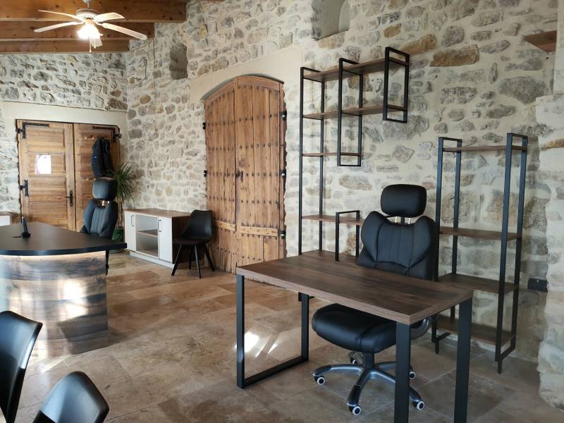 Le lieu est magique, de la pierre au sol, une belle hauteur sous plafond avec des poutres apparentes, et de vieilles portes en bois avec quincaillerie en métal noir apparente;