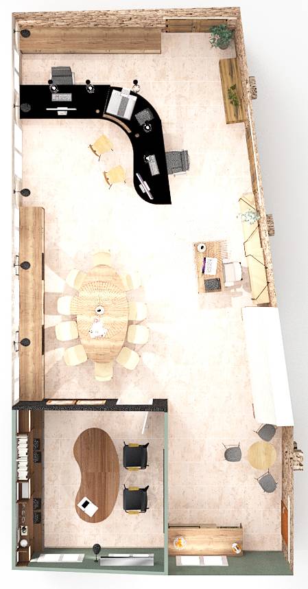 Les clients nous ont laissé une pièce magnifique, entièrement libre et carte blanche pour leur créer un aménagement sur mesure pour leur bureau administratif;