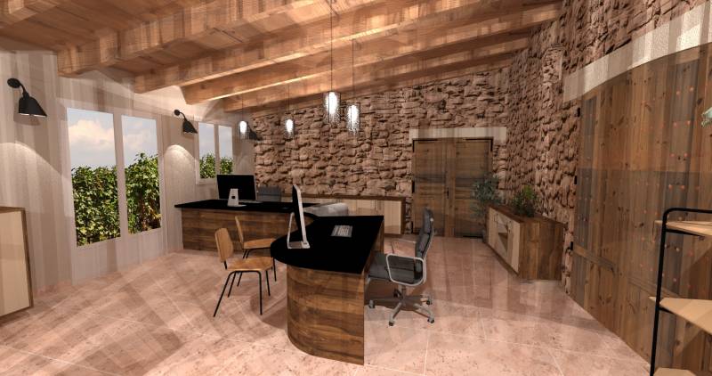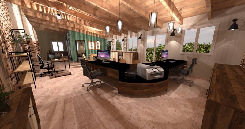 Le cahier des charges a été défini avec le personnel, il fallait une banque d'accueil pour deux personnes avec un emplacement commun pour leur imprimante ou l'échange de dossier,
