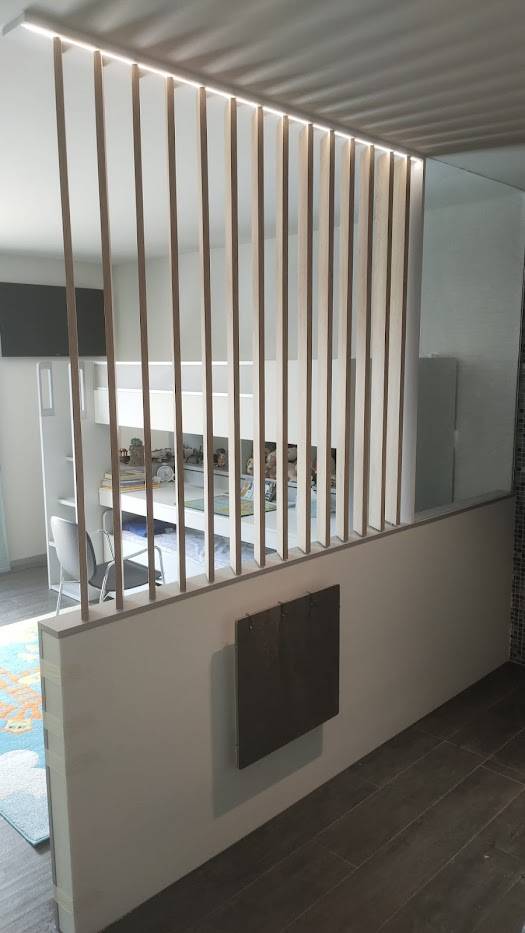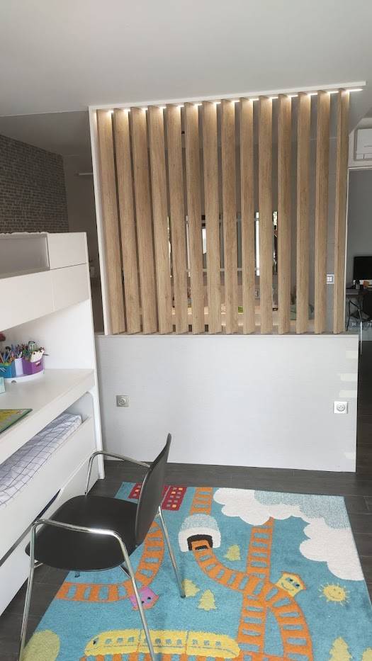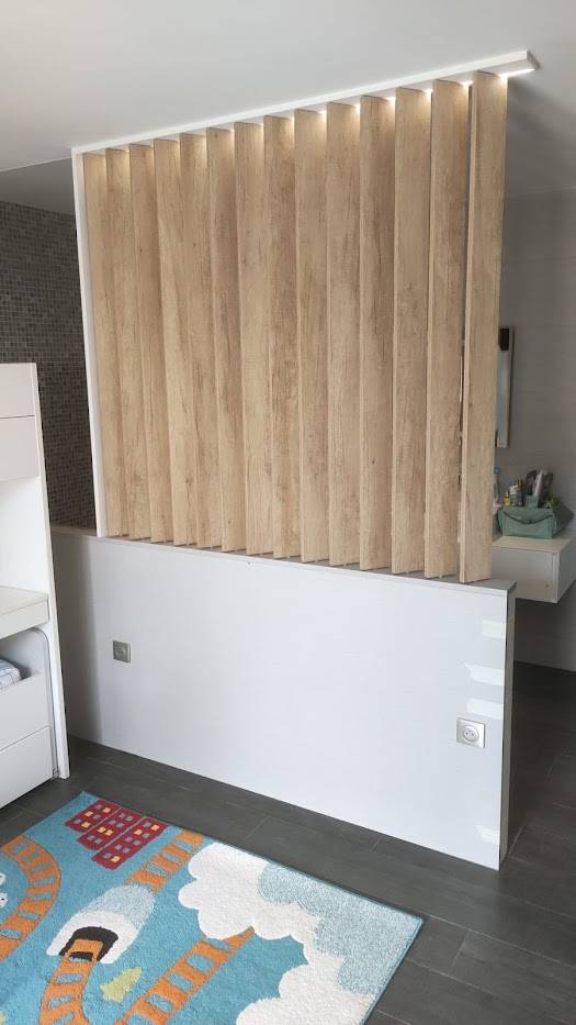 Fabrication sur mesure d'une cloison séparative entre une chambre d'enfant et une salle de bains;