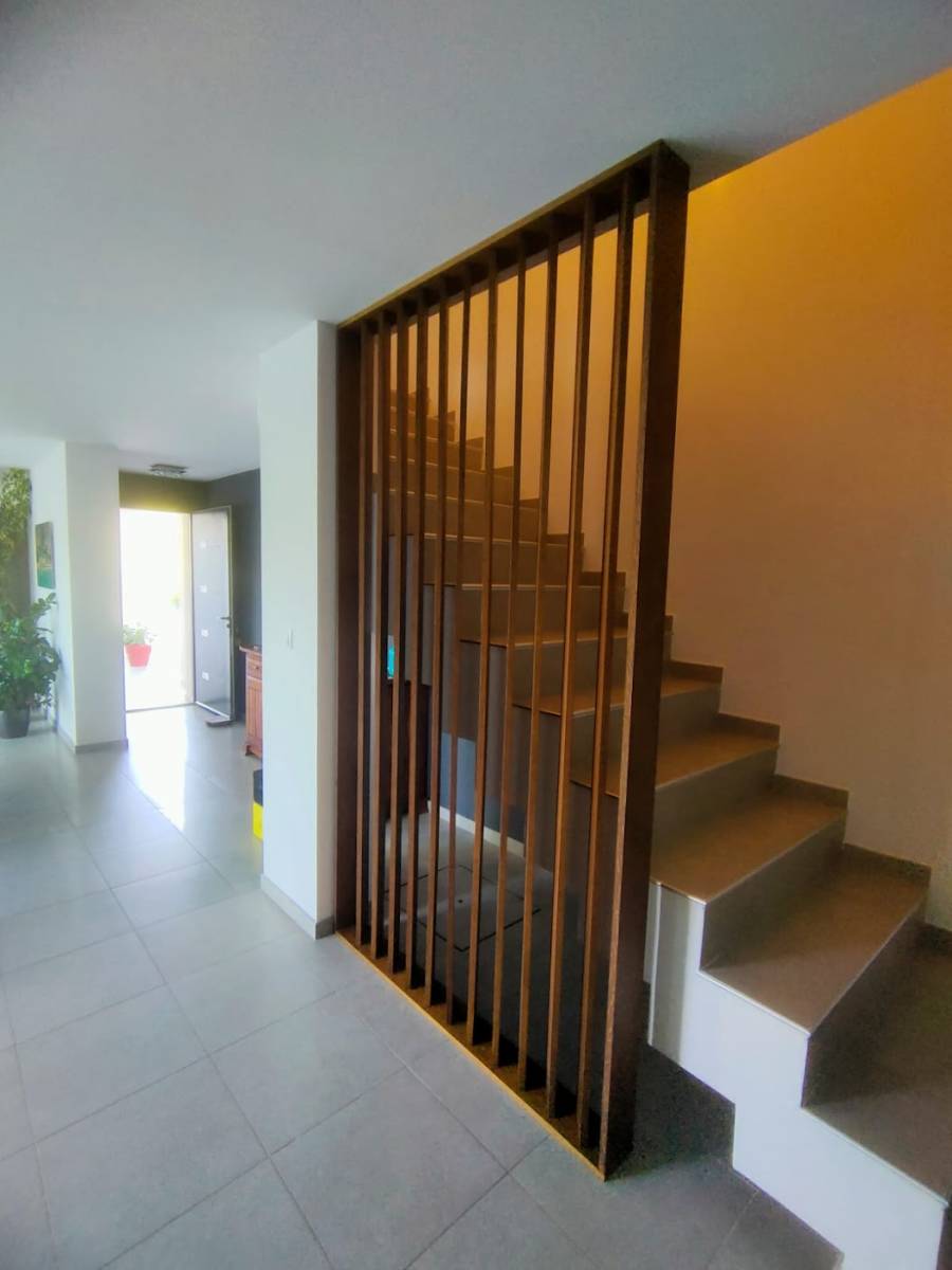 je vous joins un autre exemple de réalisation d'un claustra séparatif faisant office de garde corps pour un escalier ;