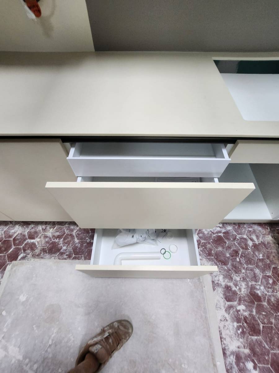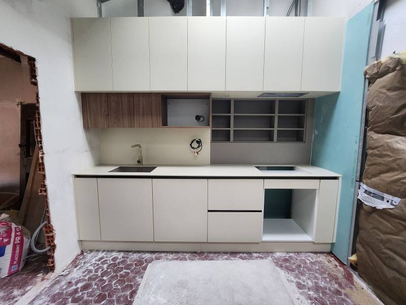 Chaque création Agencement3D est fondue sur mesure entre les murs , garantissant une harmonie parfaite avec votre espace. Le plan de travail en solid surface allie esthétique et fonctionnalité, offrant durabilité et facilité d'entretien.