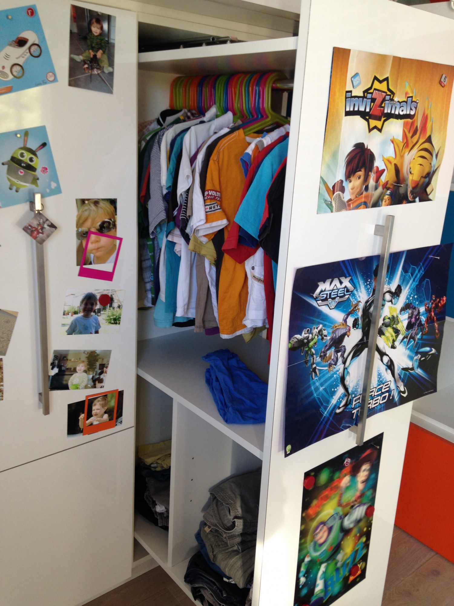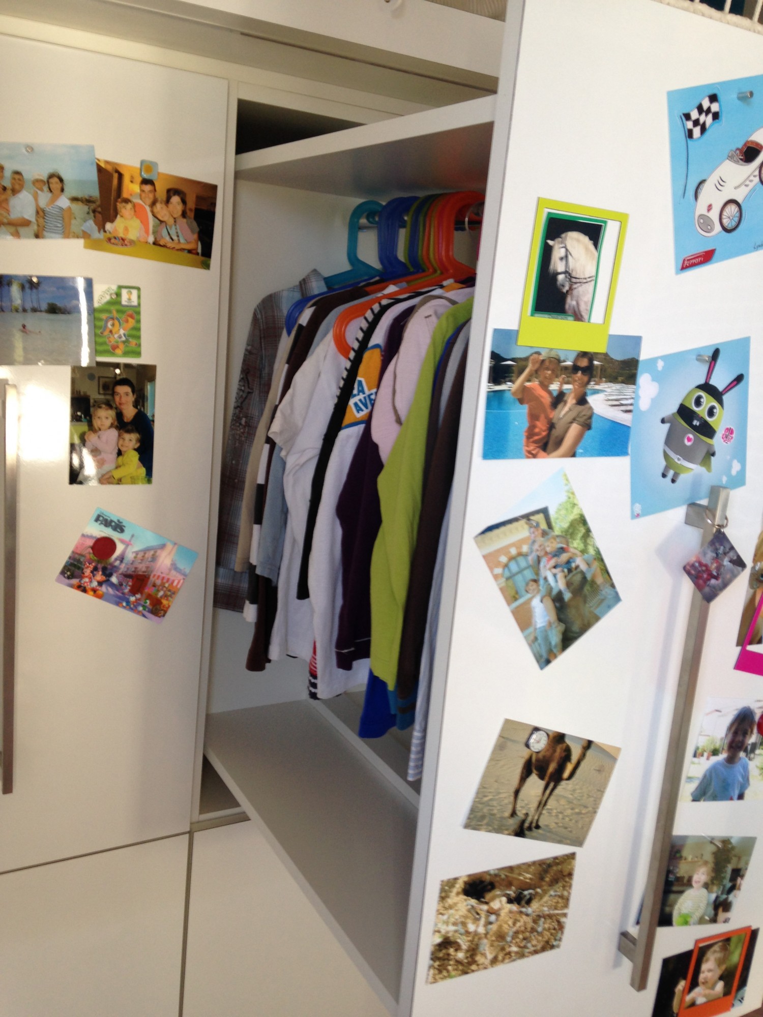 Les portes sont aimantées et velleda pour accrocher des photos ou dessiner directement sur les portes....