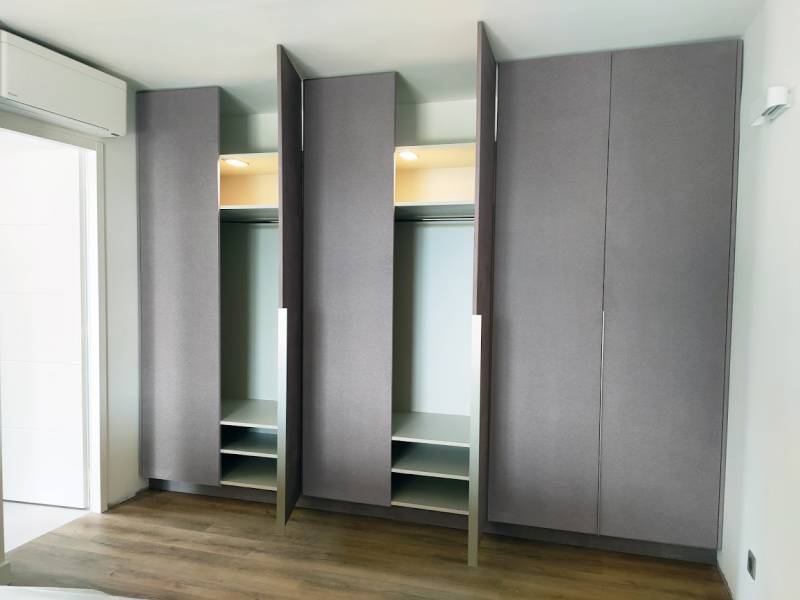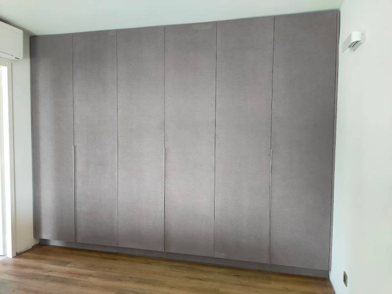 Dans cette réalisation à Saint Tropez, les clients souhaitaient de la "matière" sur les portes de leur dressing;