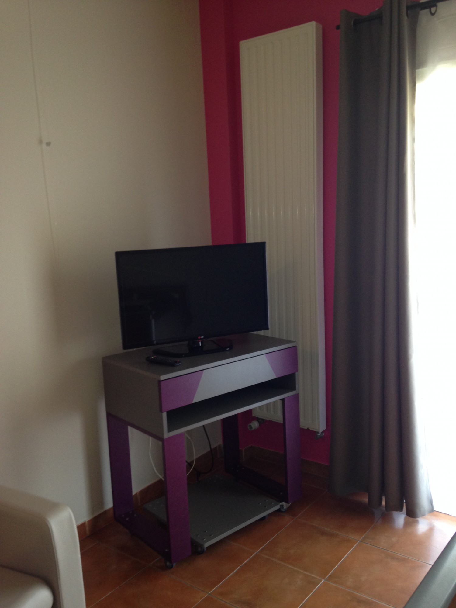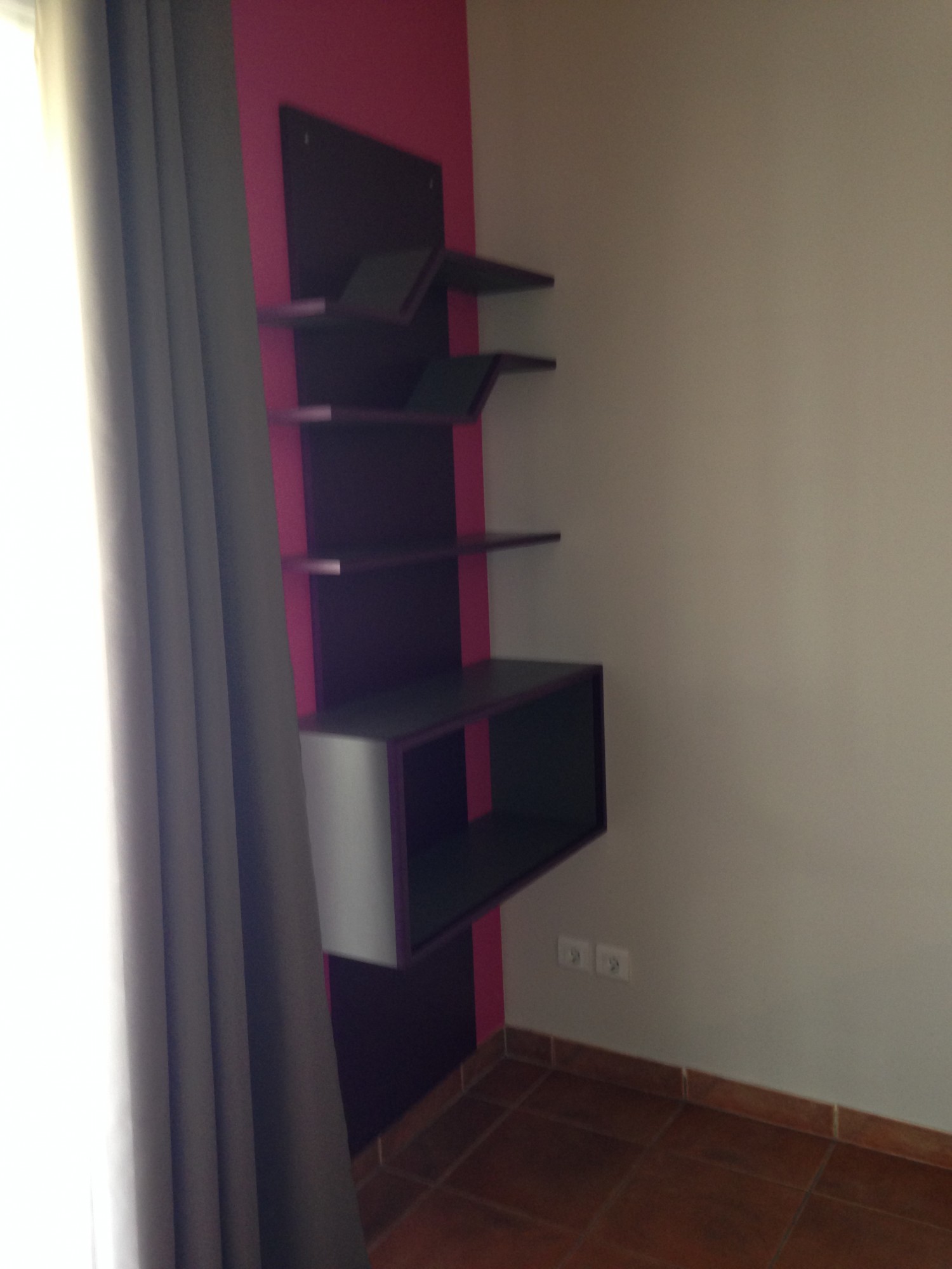 un ensemble de 3 meubles complémentaires ainsi que les rideaux coordonné au jeté de lit.