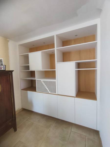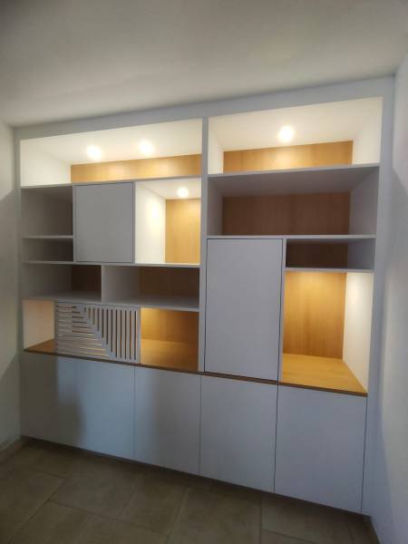 Fabrication sur mesure d'un espace de rangement sur mesure multifonctions dans le séjour;