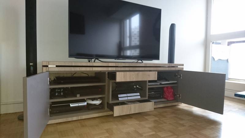 Le meuble TV reflète notre personnalité et nos intérieurs, il peut être suspendu, intégré, en bois, en laque... adapté à votre télévision pour la mettre en valeur ou au contraire la cacher, il permet aussi l'intégration de tous les nouveaux appareils : box, console de jeux, et offre également du rangement : vaisselle, livres ou autres.