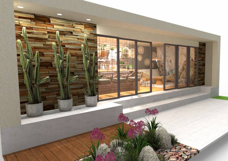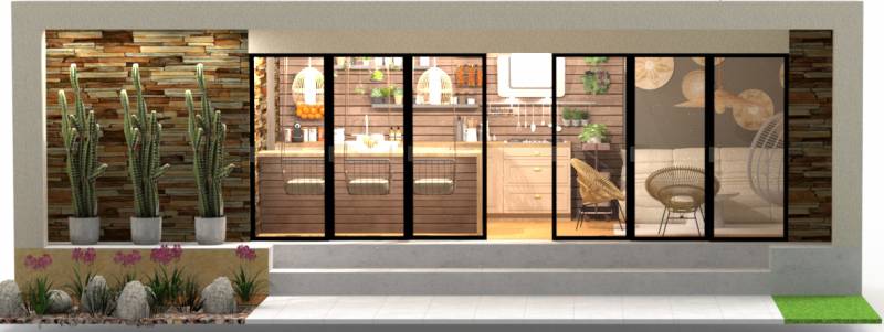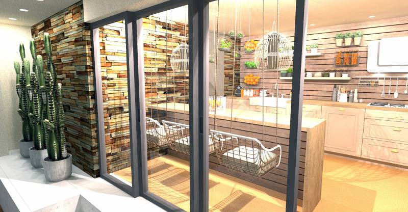 Nous leur avons proposé, de fermer cet espace par des baies à papillon, leur laissant la possibilité de le fermer l'hiver et de pouvoir en profiter l'été;
