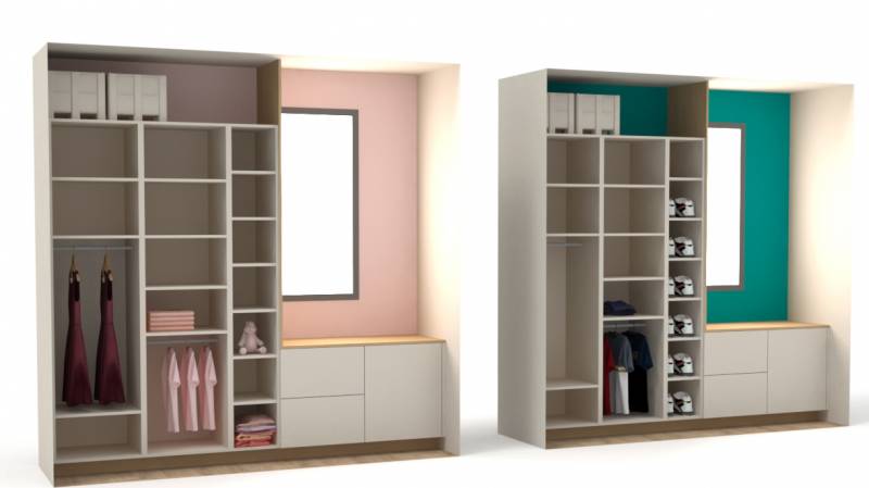 Les chambres enfants se veulent symétriques, avec des rangements multifonctions, autant pour les vêtements que pour les jouets ou les affaires scolaires;