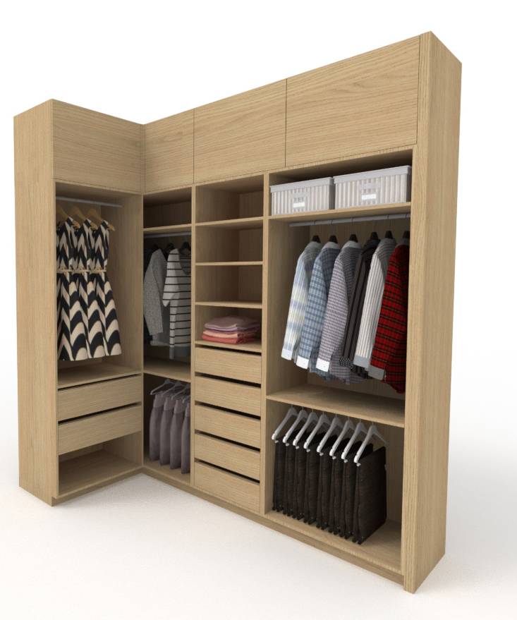 Un dressing parental, tout en longueur et en hauteur ! ici, il est important de pouvoir utiliser la verticalité de l'espace afin d'aménager tous les coins pour le rangement des vêtements de madame, ( et un peu de Monsieur ;-)