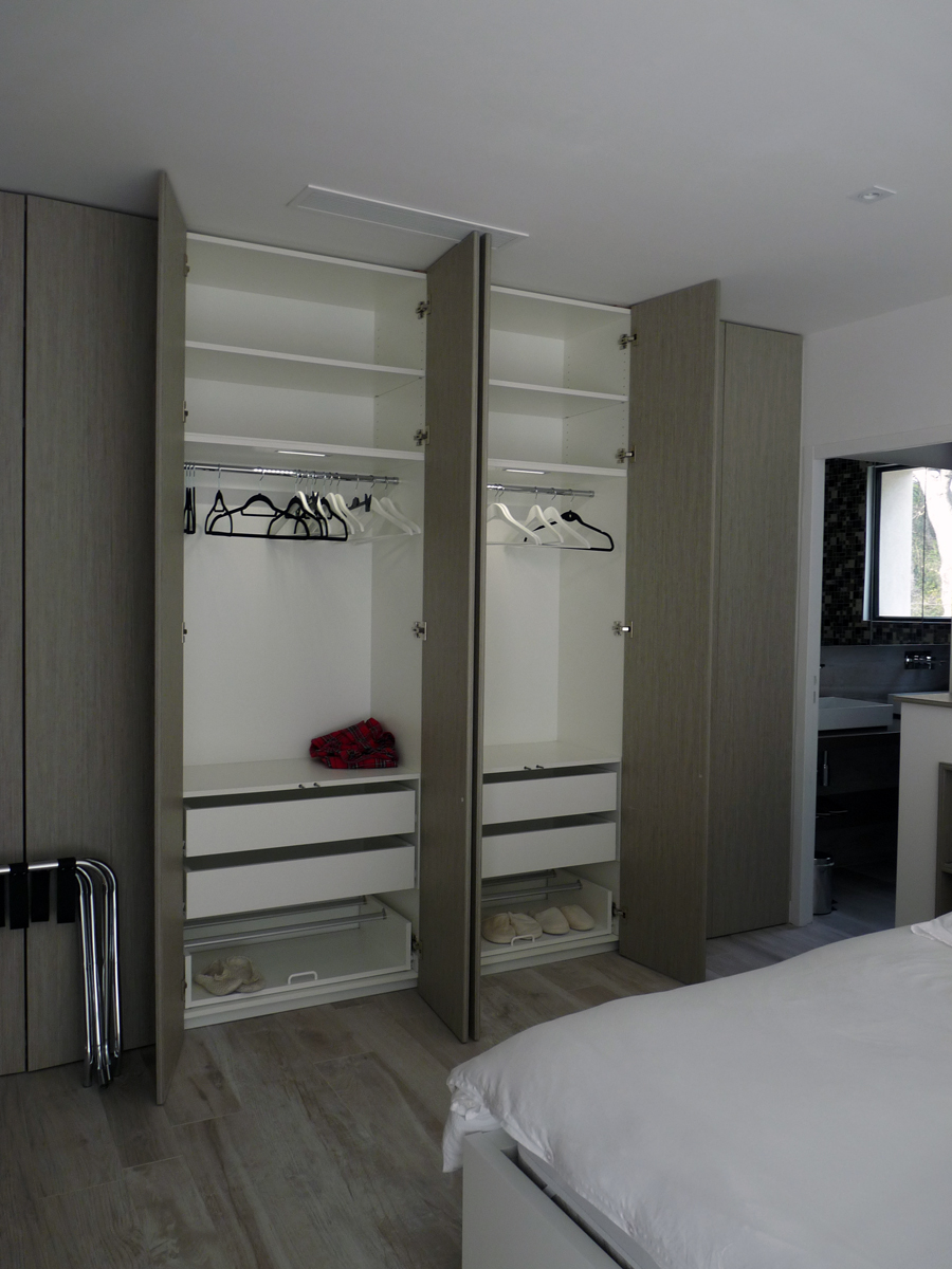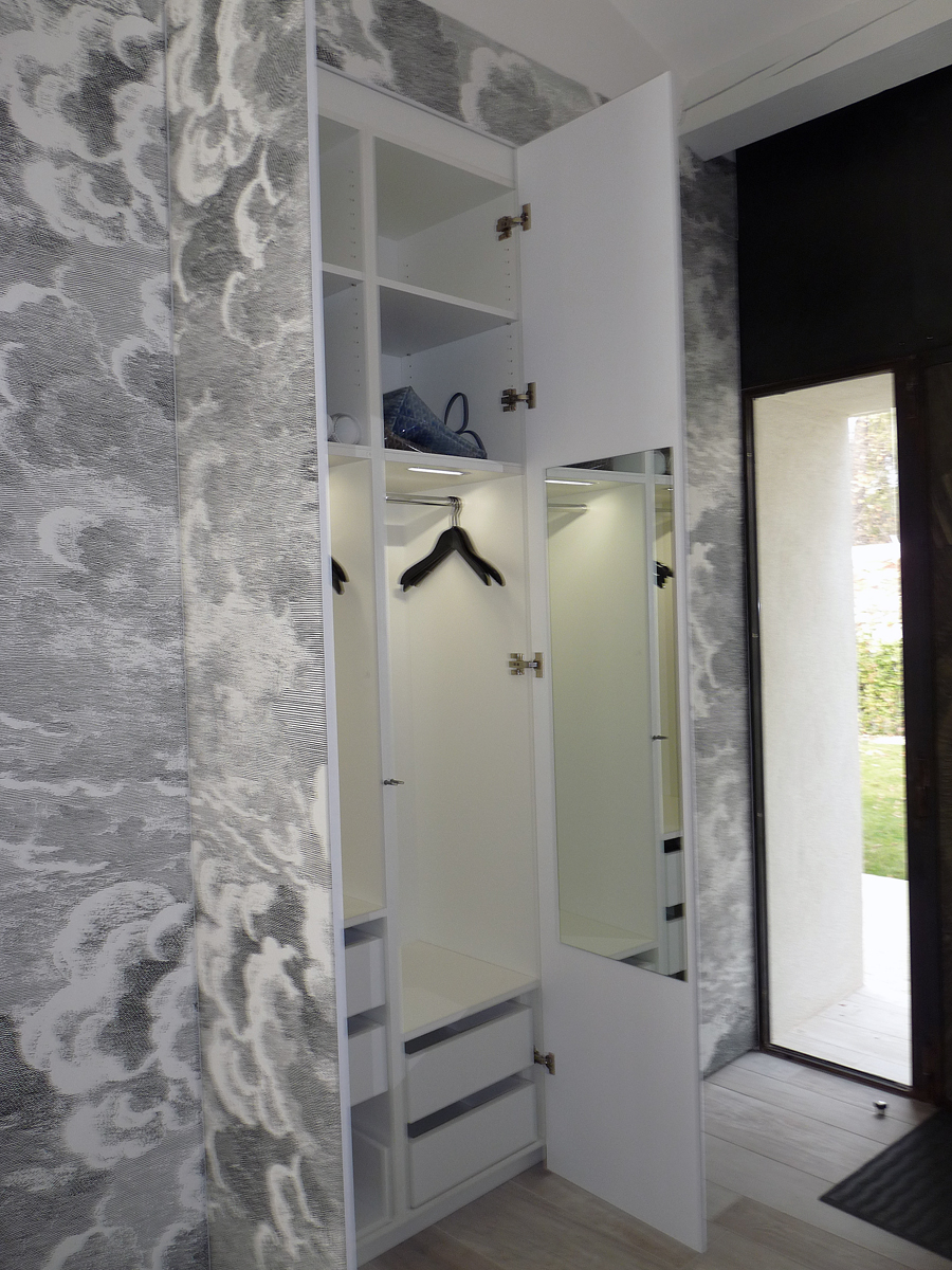 Avec des tablettes réglables en hauteur sur taquets amovibles, des tiroirs avec ralentisseurs de fin de course intégrés, des tablettes sur coulisses pour le rangement des chaussures et le comble du luxe : des détecteurs de mouvements qui éclairent les leds à l'intérieur pour toujours trouver ce que l'on cherche au fond de nos placards,