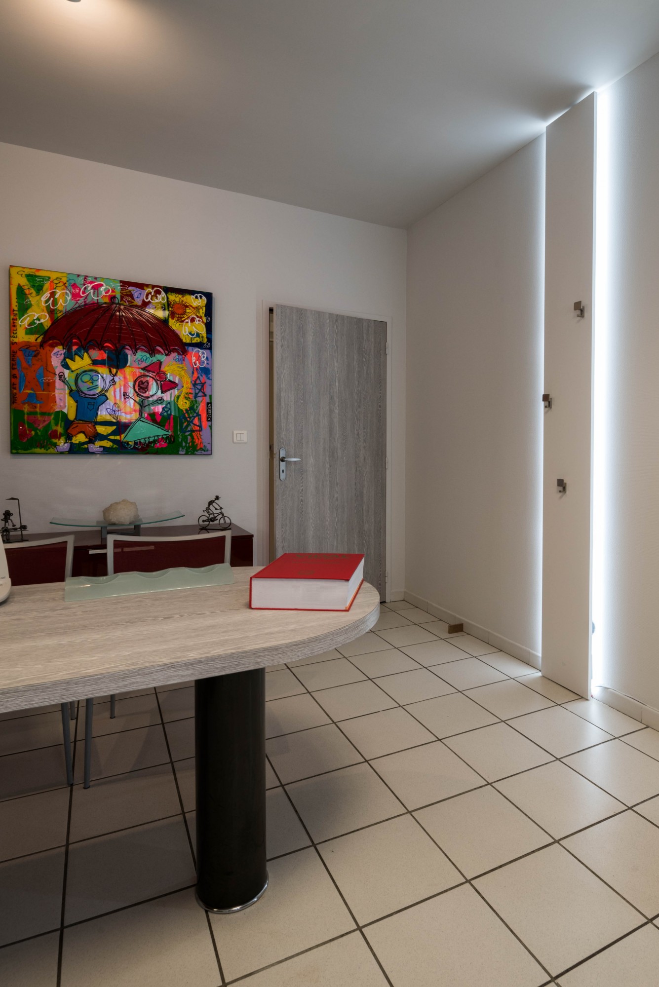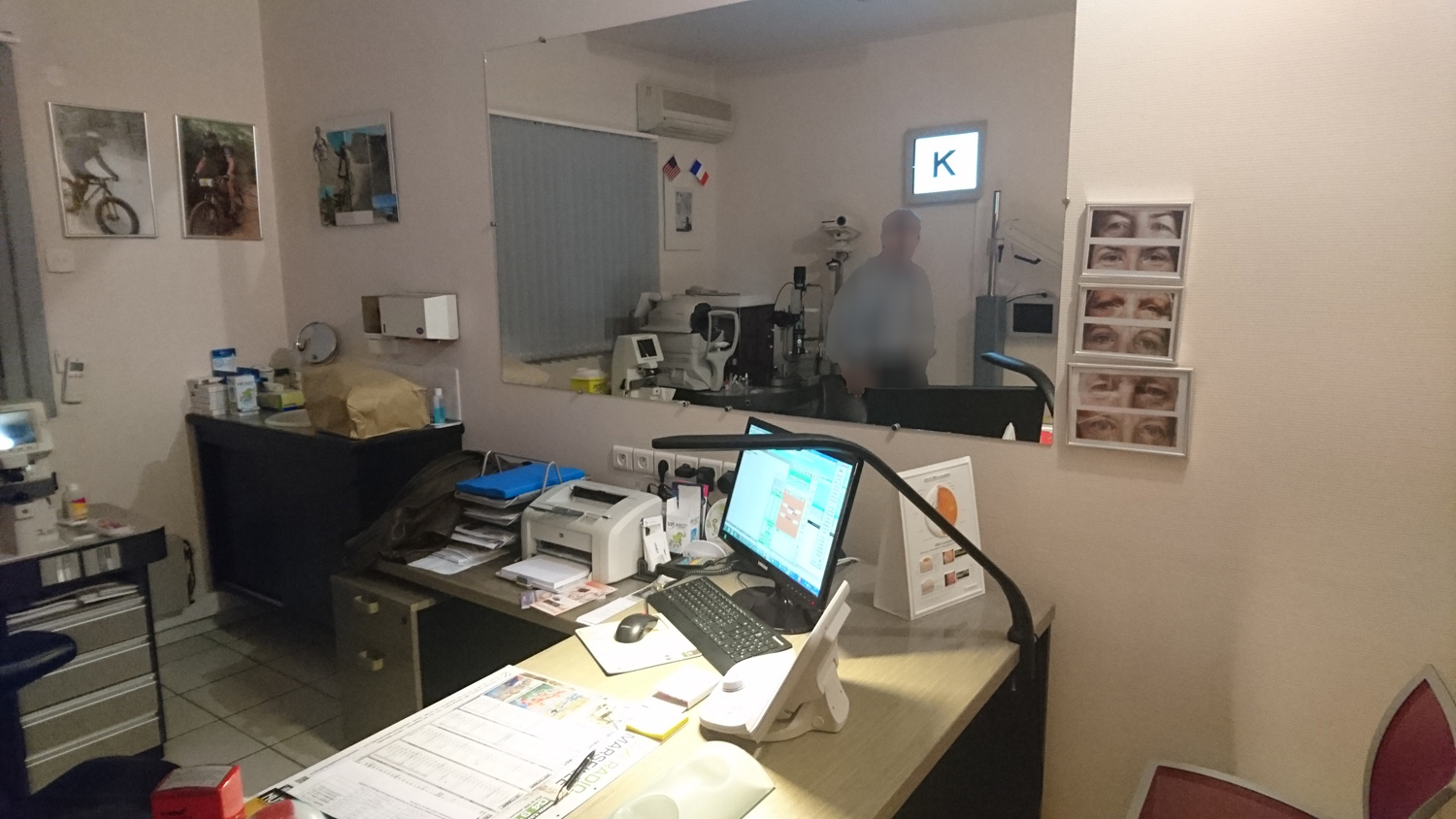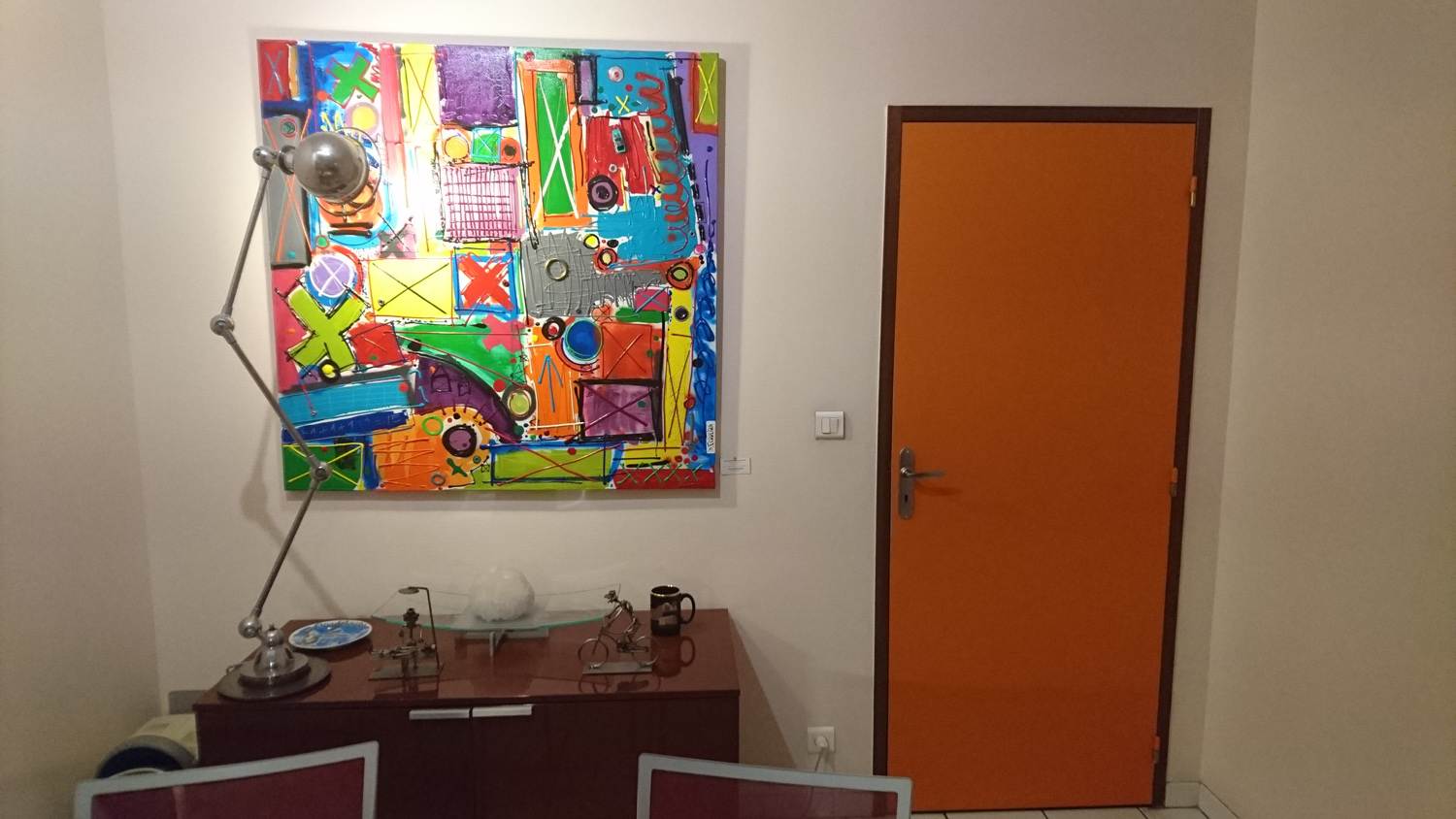 Pour la partie bureau, nous avons réutilisé l'ancien, et avons changé uniquement le revêtement stratifié, le piétement central de celui ci permet une bonne aisance au praticien, et ne souhaitait pas en changer.