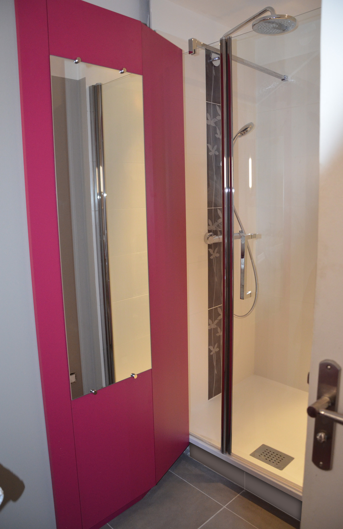 Fabrication d'un meuble sur mesure en stratifié rose fushia,