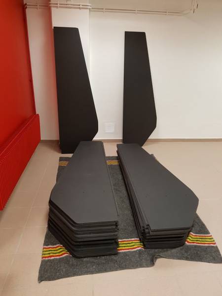 Nous avons donc développé des modules en noir et rouge permettant l'intégration en angle dans la pièce,